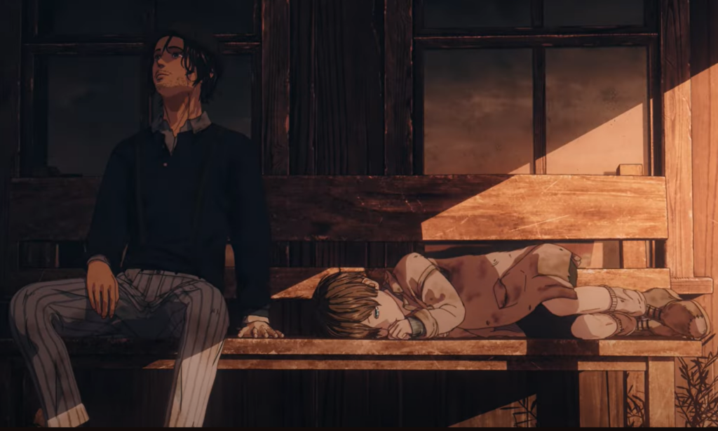 また冒頭、子どもは夕日に照らされた日向で眠っているが、おじさんは影の中にいる。この対比も象徴的だ。さらにおじさんの服装が汚れたままで一切変化しない点も「時間の止まった存在=死者」を示唆している。